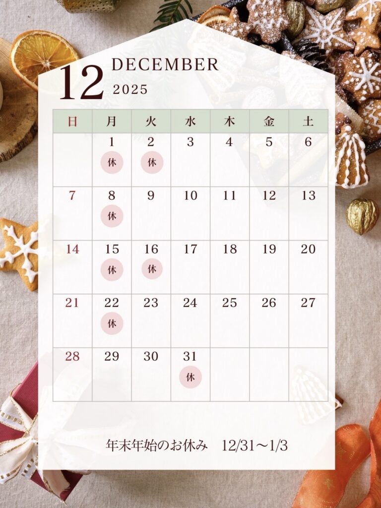 29日(月)は通常ですと定休日ですが年末ということで営業します。