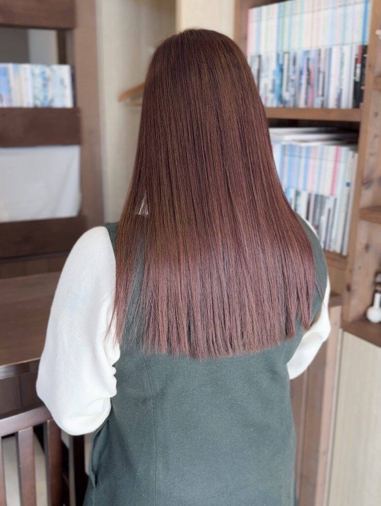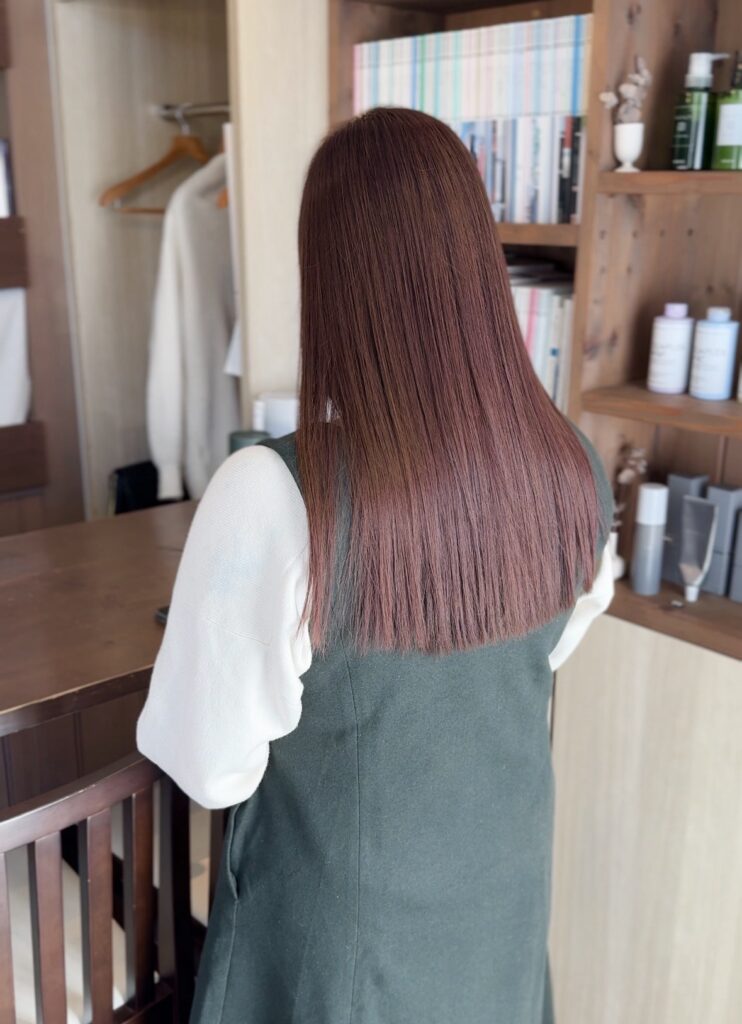 ですのでまずは傷ませないことがとても大切になるんですが、ヘアカラーやパーマ、縮毛矯正などやりたいことが沢山あってそれはどれも髪に負担になることばかりなので、定期的なケアやご自宅での毎日のケアがとても大切です