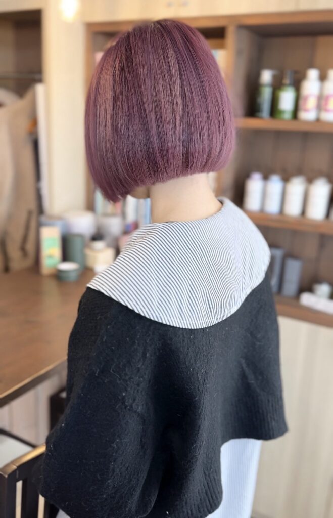 ブリーチしてからのカラーは色持ちはよくないので、ご自宅でのケアや次回のカラーのご提案もさせていただきましたが、まだまだブリーチ系カラーの色持ちは良くないという認識が無い方も多く、すぐ抜けちゃうよと話すと驚かれることも少なくありません。