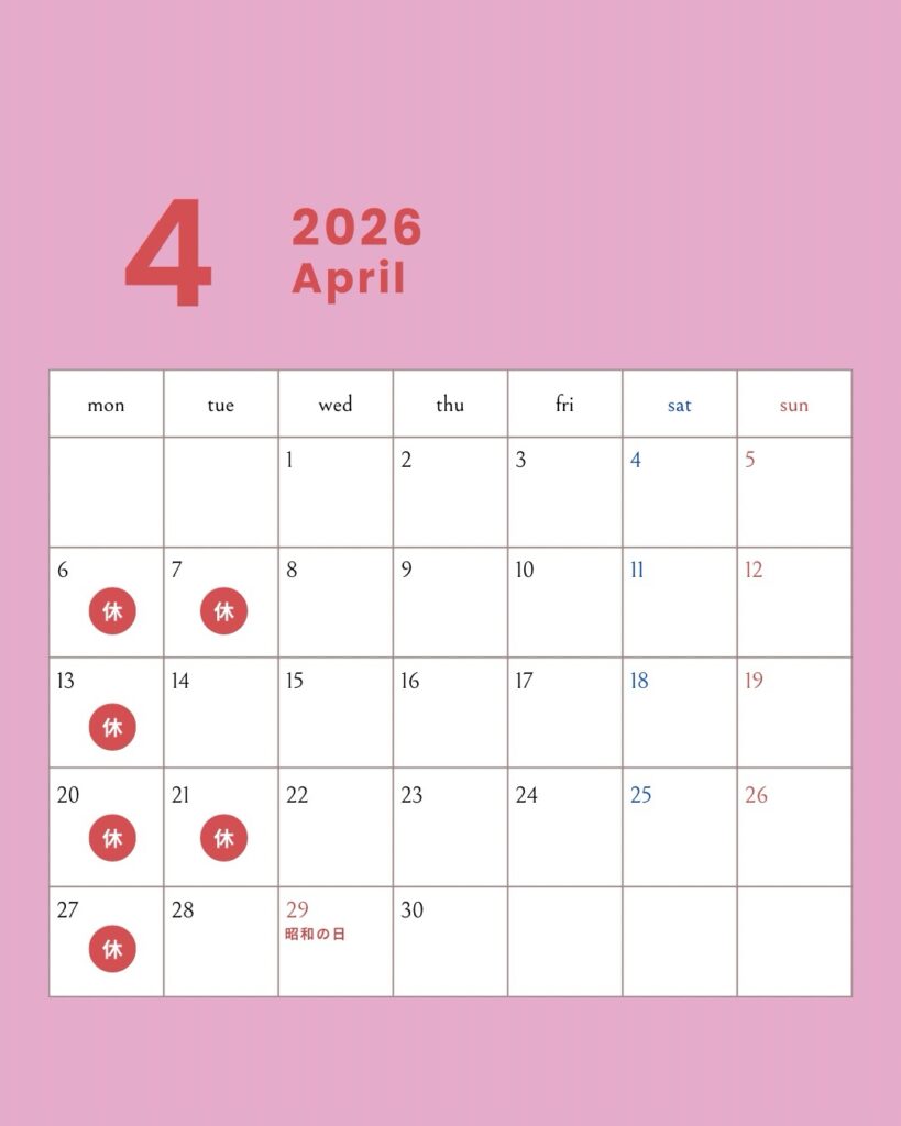 月曜・第一、三火曜日が定休日です