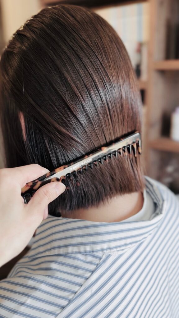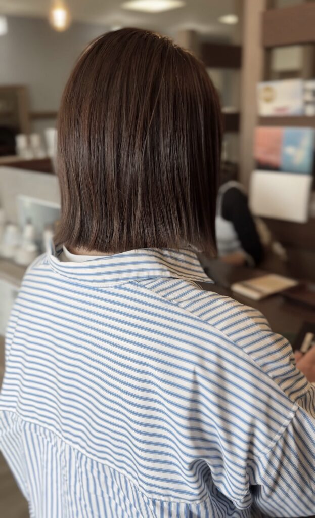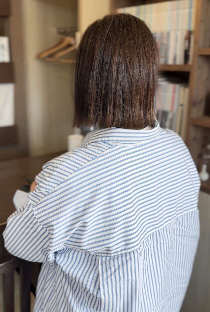 ちなみにこちらの方も普段は内巻きにしたり外はねにしたりしたいので今回は仕上げにストレートアイロンで毛先を少し外に流すようにスタイリングしています。