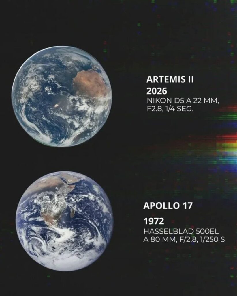 1972年にアポロ17号から撮られた写真が下で、今回のアルテミスⅡから撮ったのが上なんですが一見何がすごいの?と思われますが、実は今回アルテミスⅡが撮ったのは夜側の地球なんです。